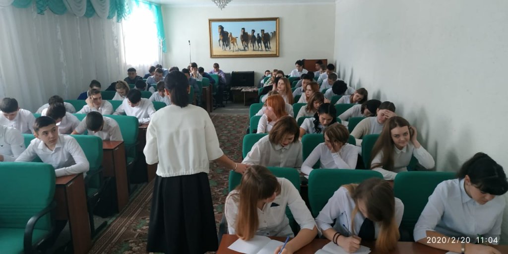 20.02.2020 Бүгін 2020 жылдың 20 ақпанында Қазақстан Республикасы Үкіметінің Абай Құнанбаевтың 175-жылдық мерейтойын өткізу жөніндегі жоспарына сәйкес, сағат 11.00-де "Ұлы Абай халық жүрегінде" диктант өтті.