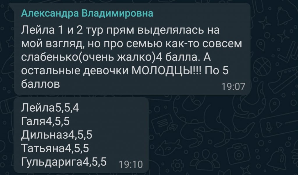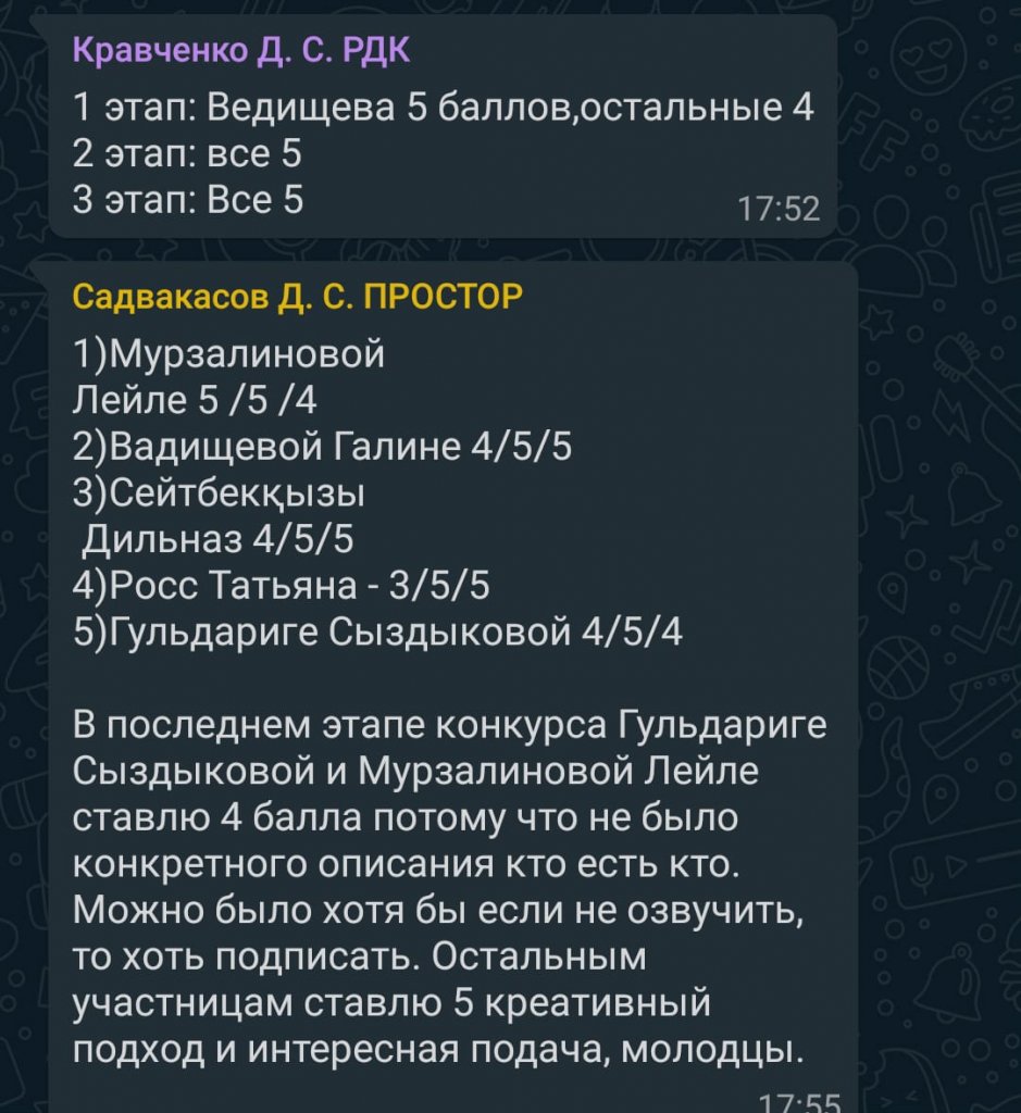 Онлайн байқау қорытындысы бойынша 3 орынды Мурзалинова Лейла мен Гульдариға Сыздықова; 2 орынды Сейтбекқызы Дильназ және 1 орынды Ведищева Галина бөлісті. Барлық қатысушылар карантин аяқталғаннан кейін линейкада марапатталады.