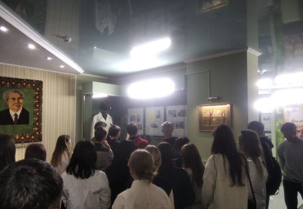 Экскурсовод студенттерге еліміздің тарихын, адам тағдырының тарихын айтып берді.