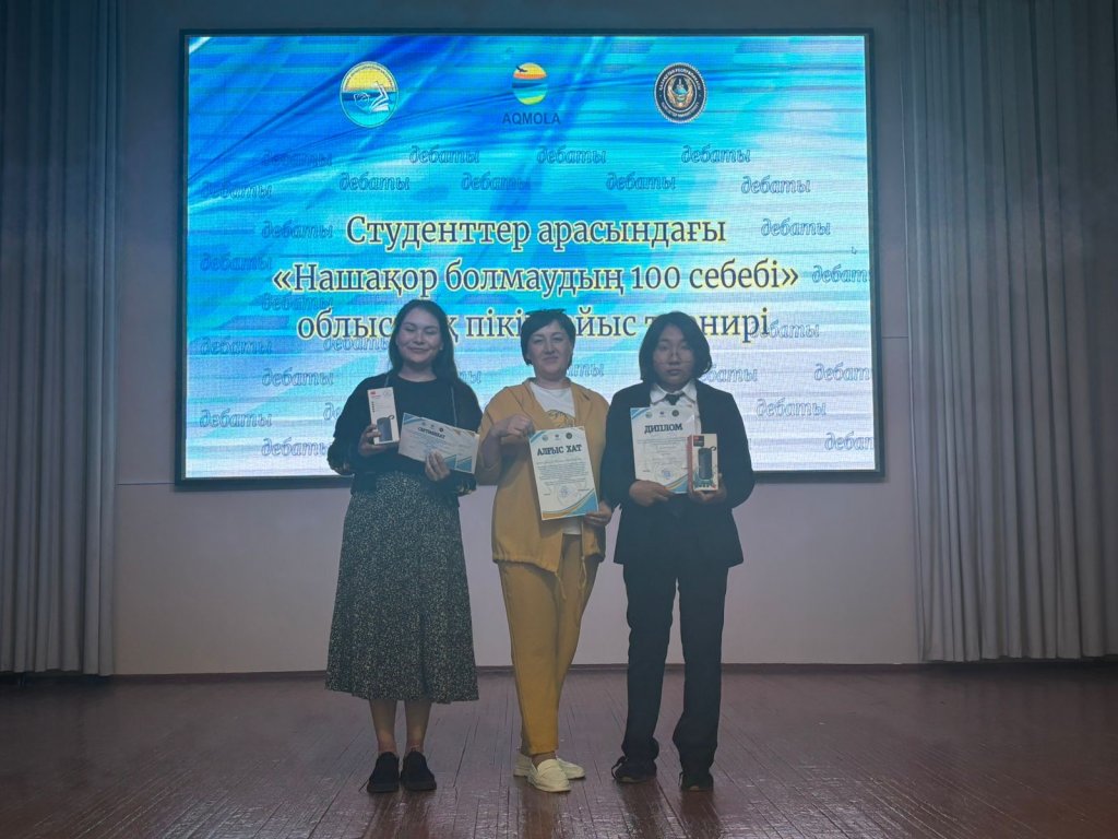 «Атбасар қаласы, аграрлық-индустриялық колледжі» МКҚК командасы құрметті үшінші орынды иеленді. Командаға қатысушылар – ПМ-35 тобының білім алушысы Жунусова Жулдыз бен ОП-11 тобының білім алушысы Балекбаева Тахмина дипломдармен, сертификаттармен және ескерткіш сыйлықтармен марапатталды.