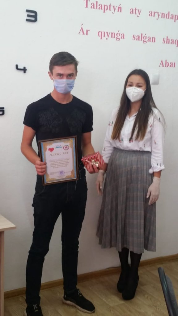 12.08.2020 ж. Жастар ресурстық орталығы колледж студенттерінің еріктілер қозғалысының белсенділерін марапаттады. Бұл Милевский Юра, Алиева Сабина, Ведищева Галина, Лемский Никита, Гирчук Владислав, Лаврушин Артур және Жакенов Данияр.