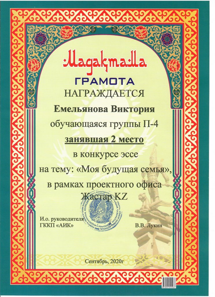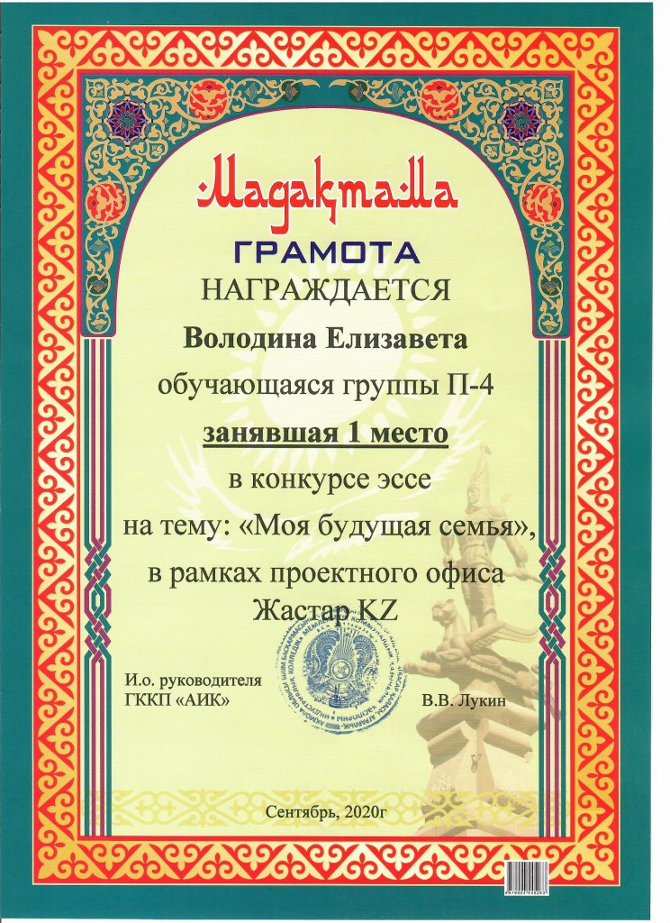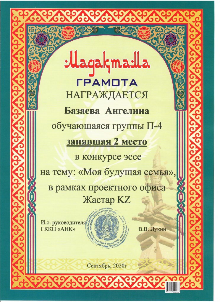 "Аграрлық-индустриялық колледж, Атбасар қаласы" МКҚК-да өзін-өзі тану апталығын өткізу шеңберінде, сондай-ақ "Жастар KZ" жобалық кеңсесі шеңберінде өзін-өзі тану оқытушысы Ю.А. Гармашова "Менің болашақ отбасым" тақырыбында онлайн-эссе байқауын өткізді, оған бірінші курс білім алушылары белсенді қатысты.