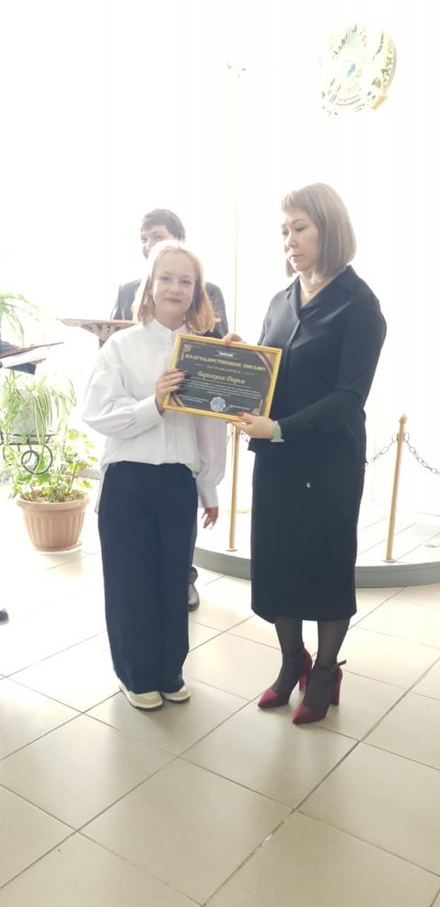 К. Е. Рысбекованың алғыс хаттарымен марапатталды.
