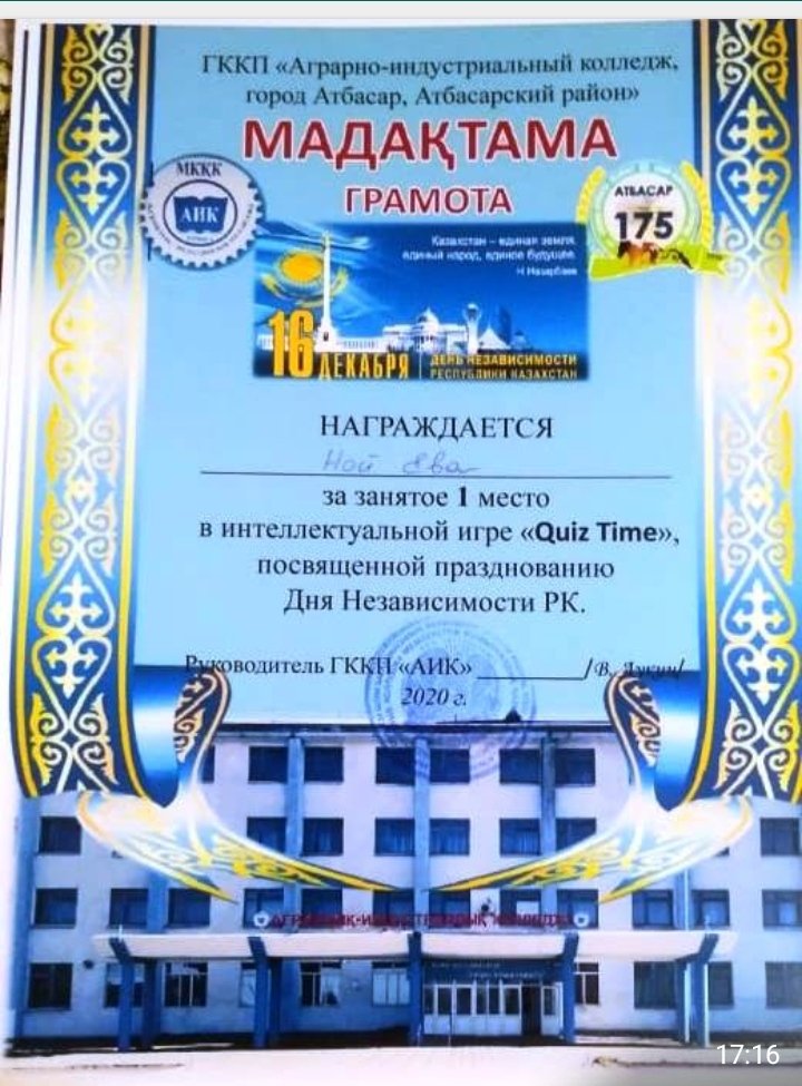 2020 жылдың 15 желтоқсанында «АИК» бас ғимаратында Қазақстан Республикасының Тәуелсіздік күніне арналған ойын өтті Бұл іс-шараның мақсаты: - жас ұрпақты отансүйгіштікке және Отанға деген сүйіспеншілікке тәрбиелеу; - өз мемлекетінің заңдары мен белгілерін құрметтеу; - әдет-ғұрыптар мен әдет-ғұрыптарға негізделген адамгершілік пен руханилықты тәрбиелеу.